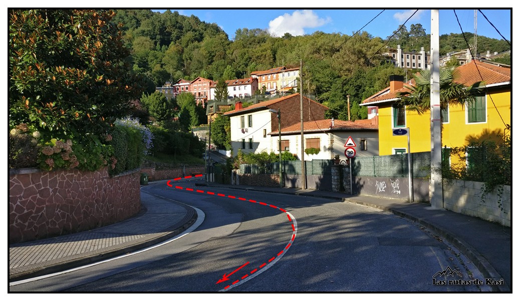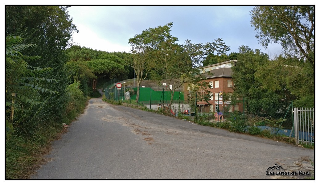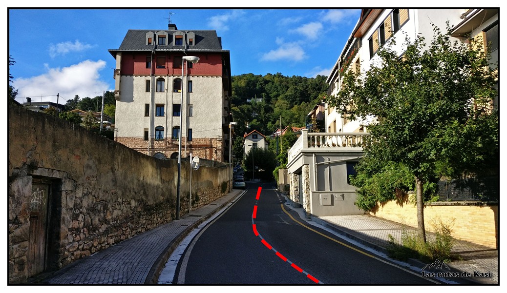 El asfalto termina en la confluencia con el camino que sube desde el barrio de Gros por la calle Zemoria.