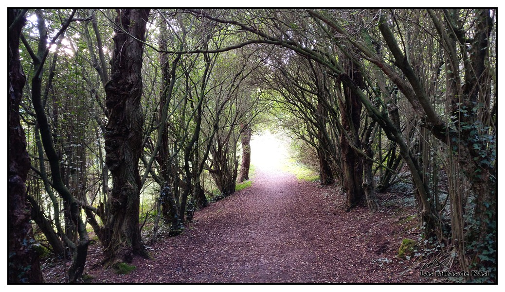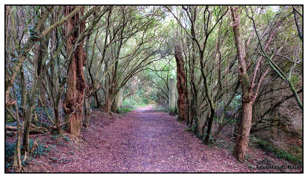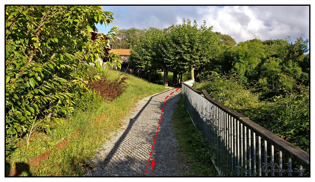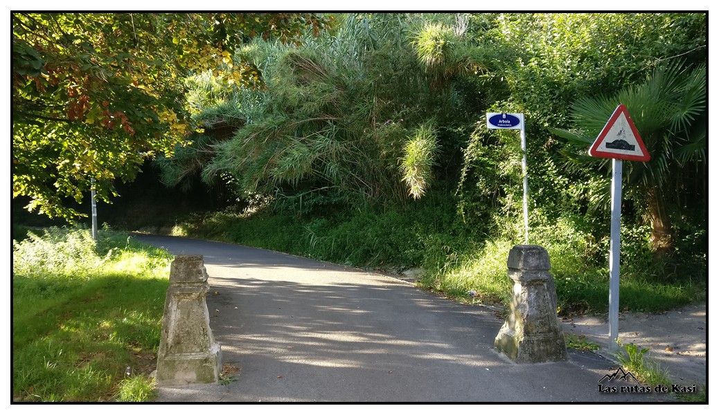Al llegar a esta bifurcación el trazado, siempre en ligero ascenso, continua por el Paseo Arbola