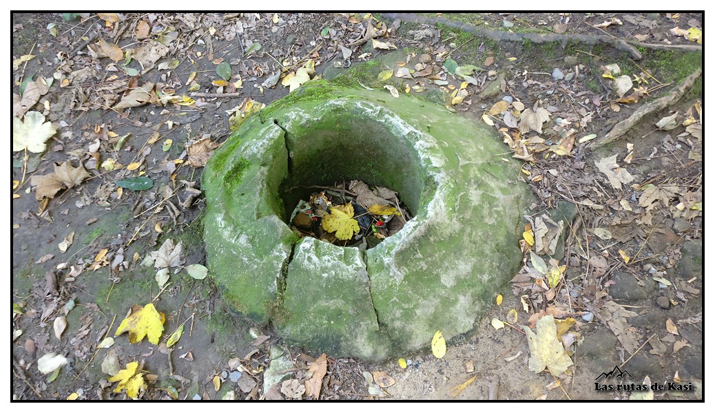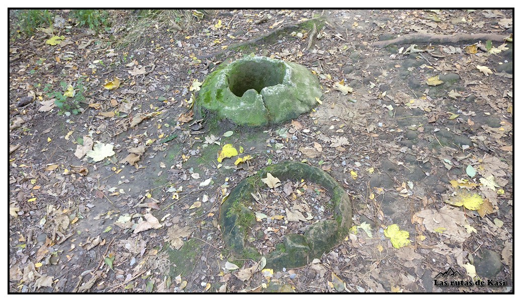 Todavía pueden verse junto al camino los restos de algunos vestigios del ferrocarril. En la foto vemos parte del soporte de sujeción donde iba insertado el poste de madera de la catenaria (tendido de cables).