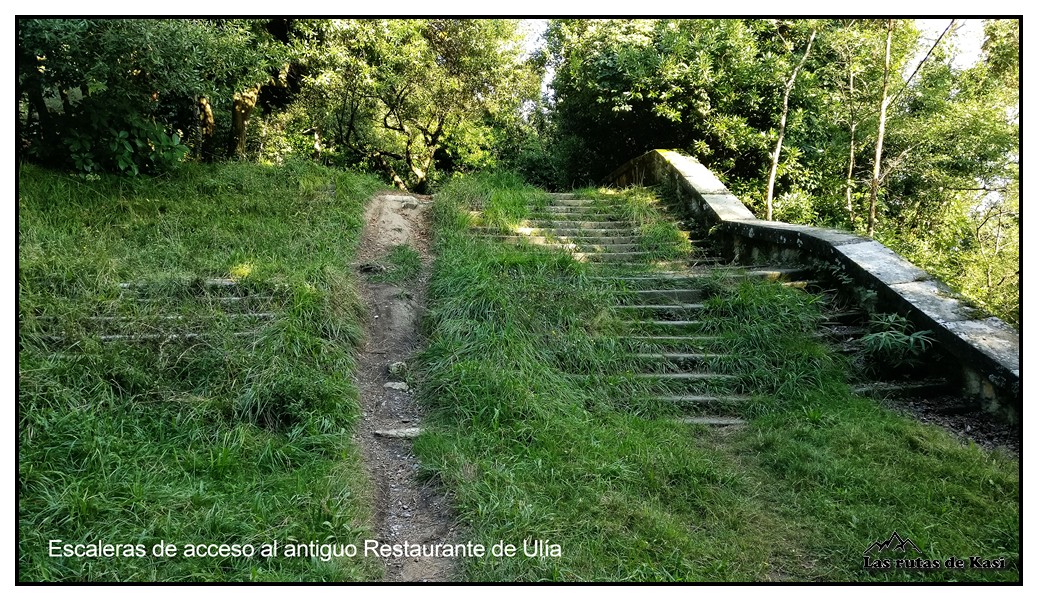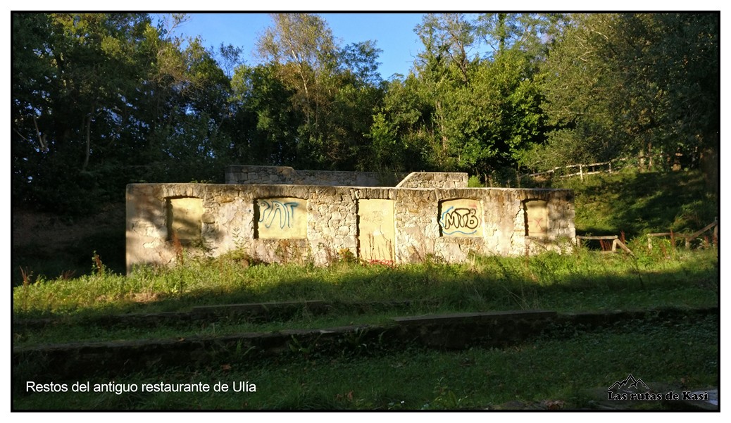 Aquí también se encontraba el restaurante del Parque de recreo de Ulía, un elegante edificio que durante décadas estuvo en ruinas. Hoy el Ayuntamiento ha adecentado la zona y se pueden ver los restos consolidados, con bancos y un entorno muy agradable para descansar.