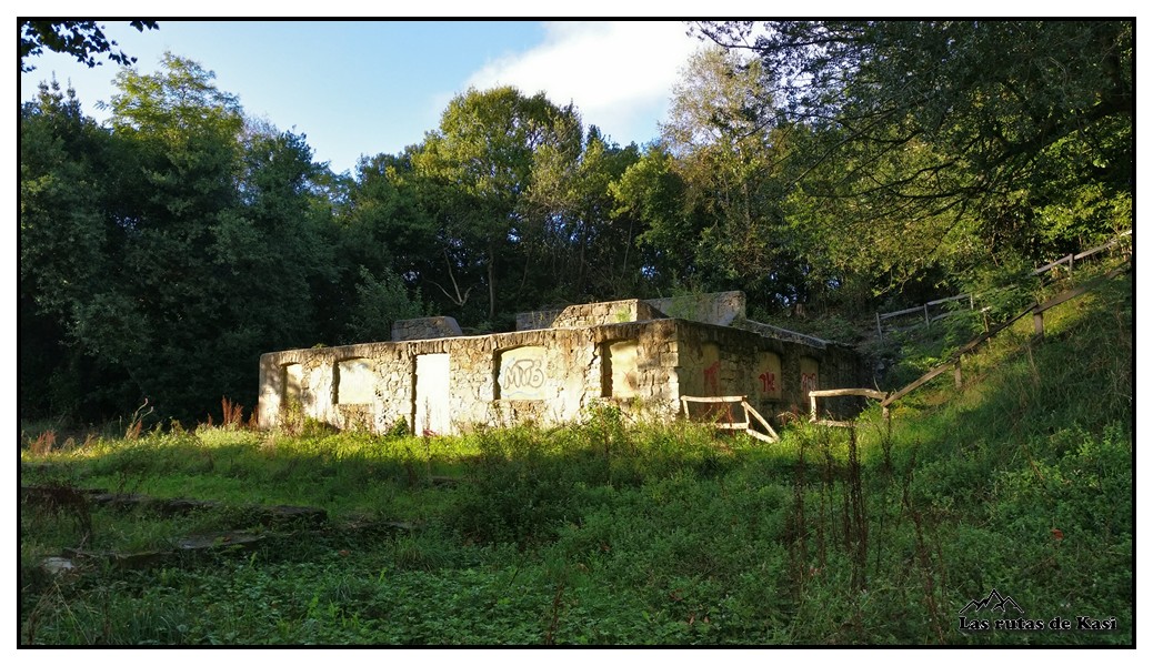 El trazado dibuja un par de curvas más antes de acercarse a los restos del antiguo caserío, hoy convertido en el albergue de Ulía. Cien metros más adelante llegamos al final del antiguo recorrido ferroviario, donde estaba la estación superior.