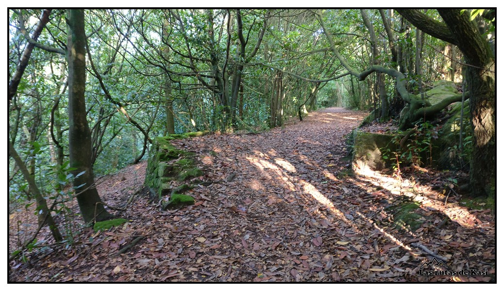 El itinerario continúa por la calle Rodil, y tras una gran curva, sube por el Paseo Arbola. Poco a poco, los edificios van quedando atrás y la pendiente se suaviza. Cuando la calle se estrecha, unos bolardos impiden el paso de vehículos grandes: a partir de aquí el paseo es peatonal.