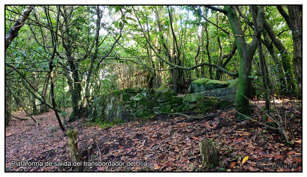 A pocos metros están los restos de la plataforma del transbordador aéreo: el muro donde la gente hacía cola para subir y los bloques de hormigón que soportaban el sistema de cables.
