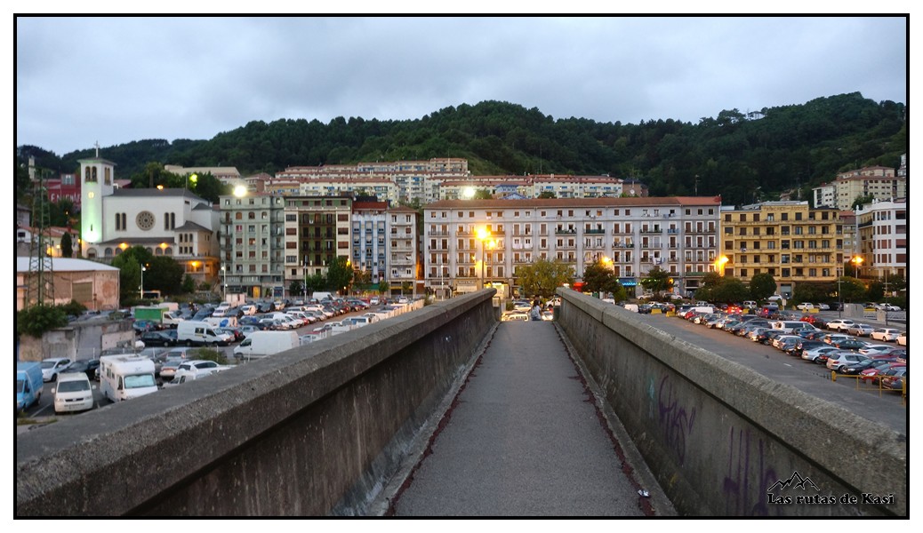 El asfalto termina al encontrarse con el camino que sube desde Zemoria. Pocos metros más adelante se abre un mirador espectacular sobre la playa de la Zurriola, aunque la vegetación amenaza con cerrar la panorámica.