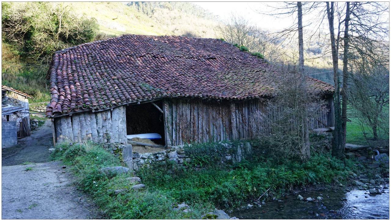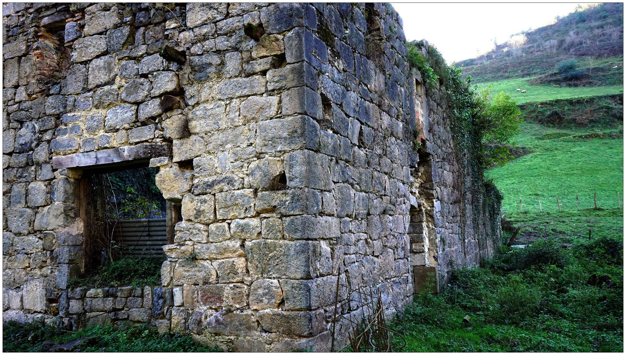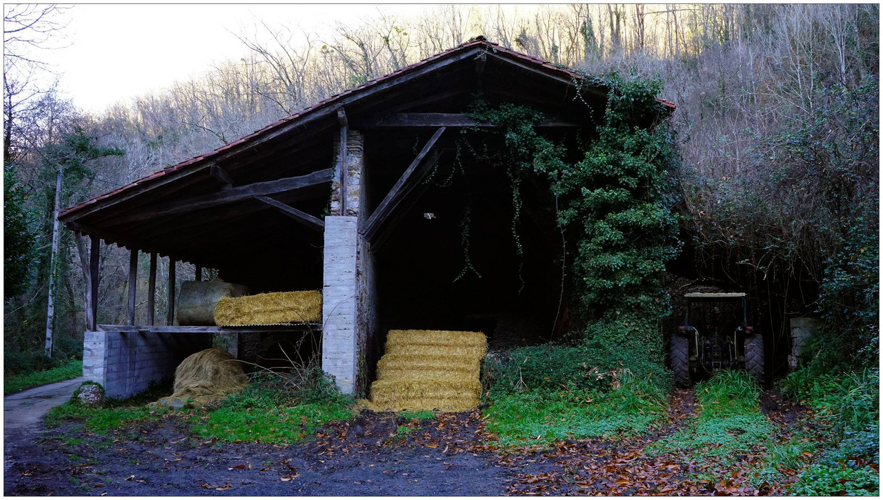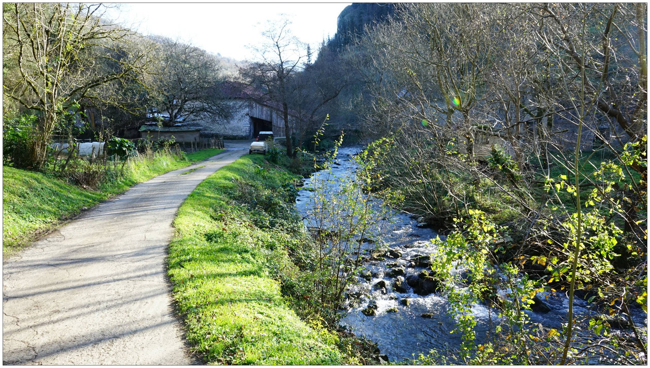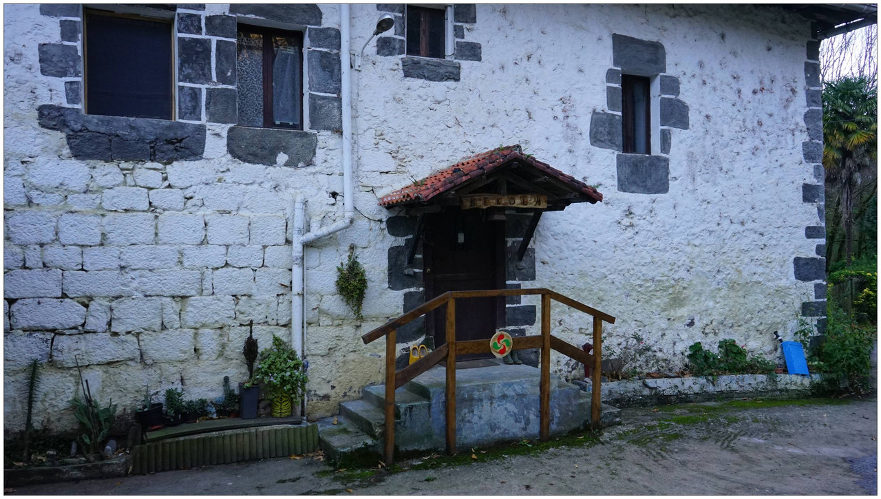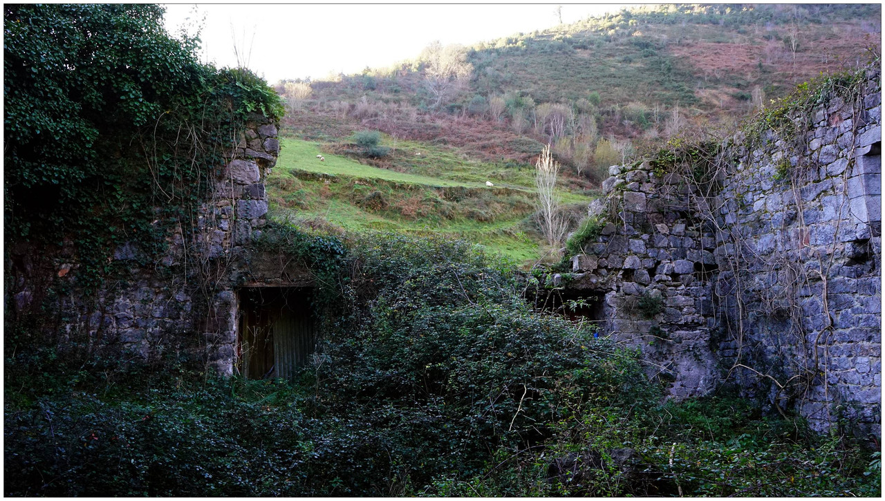 Ahora sí, emprendemos el regreso definitivo a Aizarnazabal siguiendo el Altzolaraspidea, que recorre el fondo del valle, muchas veces junto a la erreka Altzolarats. Pasamos primero junto al caserío Olalde, que da la impresión de estar abandonado. Al asomarnos por una de sus ventanas comprobamos que el interior se encuentra completamente arruinado. En la parte trasera del edificio aparecen unas ruinas invadidas por la vegetación que, por la disposición de sus muros y la presencia en la parte inferior de un arco de piedra, parecen corresponder a un antiguo molino hidráulico, otro ejemplo más del intenso aprovechamiento del agua en este valle.