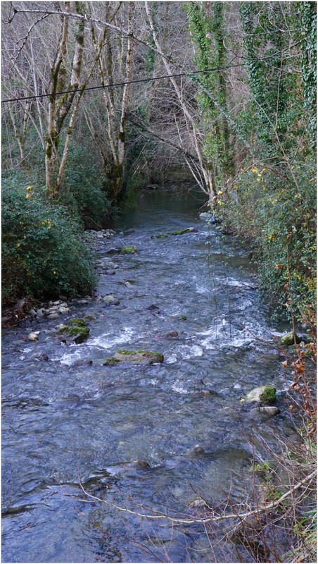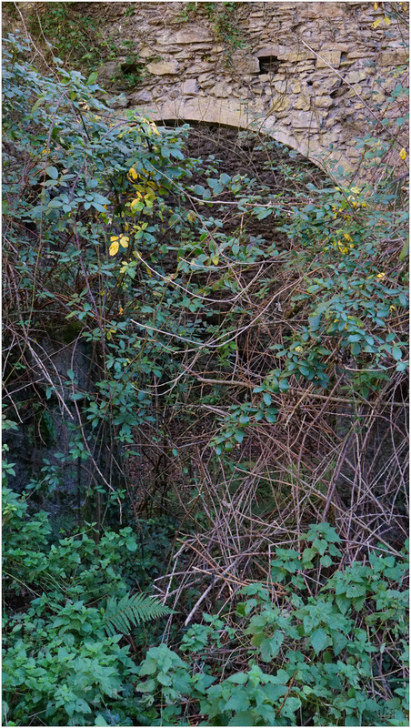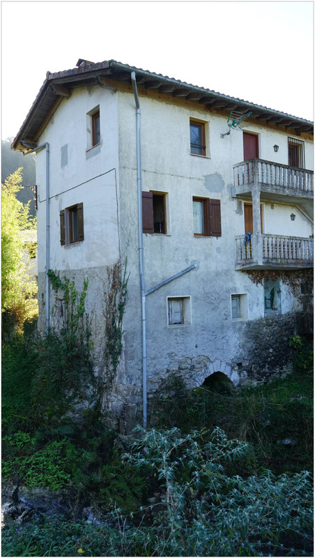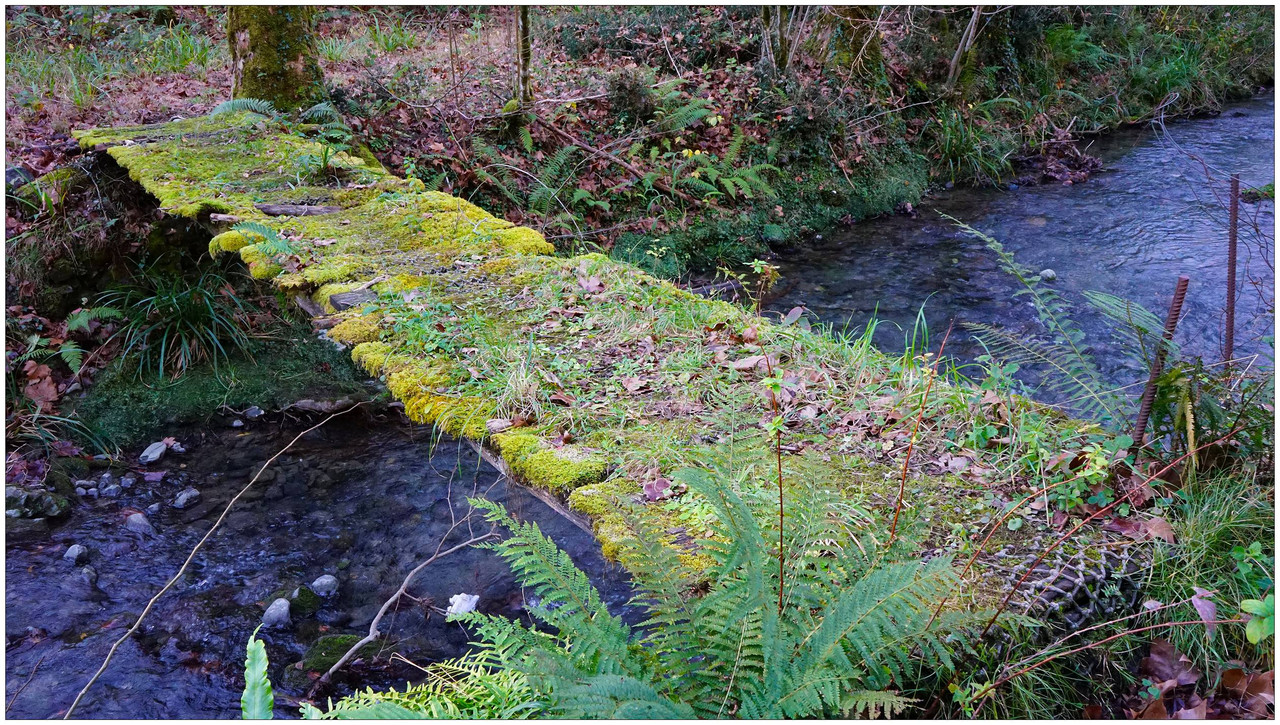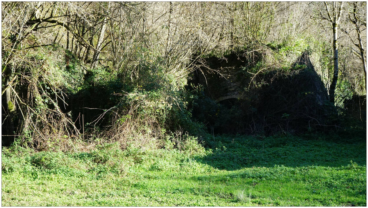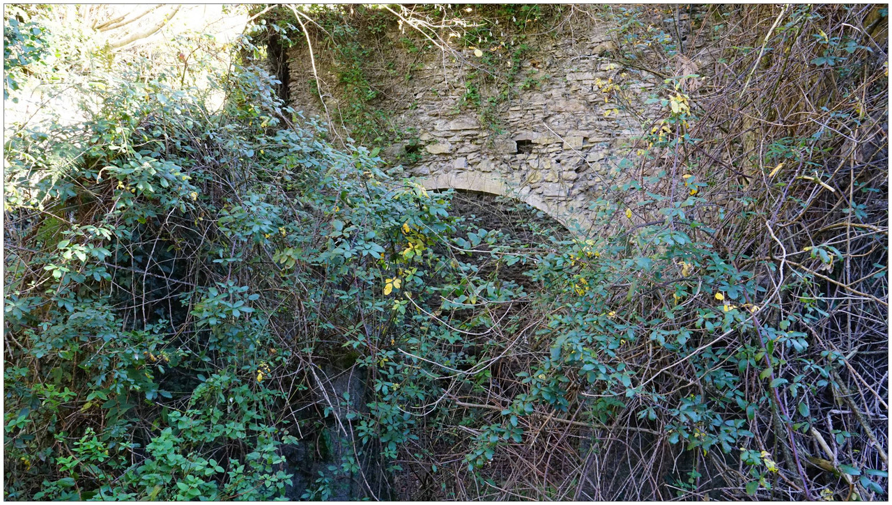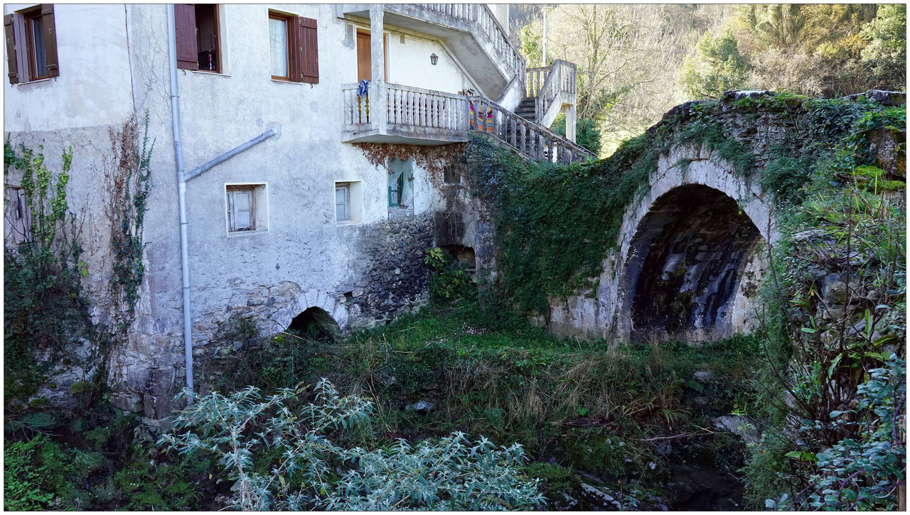 Ahora sí, emprendemos el regreso definitivo a Aizarnazabal siguiendo el Altzolaraspidea, que recorre el fondo del valle, muchas veces junto a la erreka Altzolarats. Pasamos primero junto al caserío Olalde, que da la impresión de estar abandonado. Al asomarnos por una de sus ventanas comprobamos que el interior se encuentra completamente arruinado. En la parte trasera del edificio aparecen unas ruinas invadidas por la vegetación que, por la disposición de sus muros y la presencia en la parte inferior de un arco de piedra, parecen corresponder a un antiguo molino hidráulico, otro ejemplo más del intenso aprovechamiento del agua en este valle.