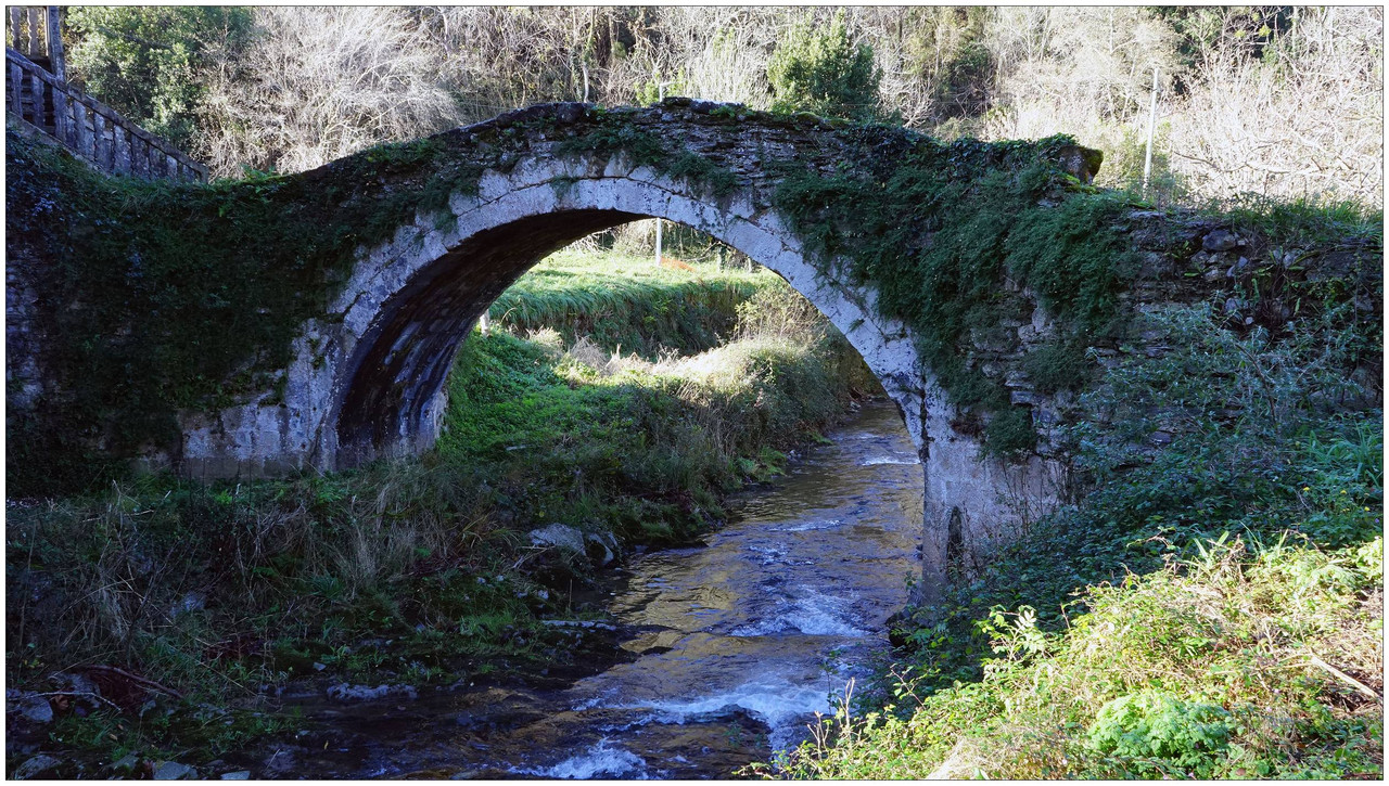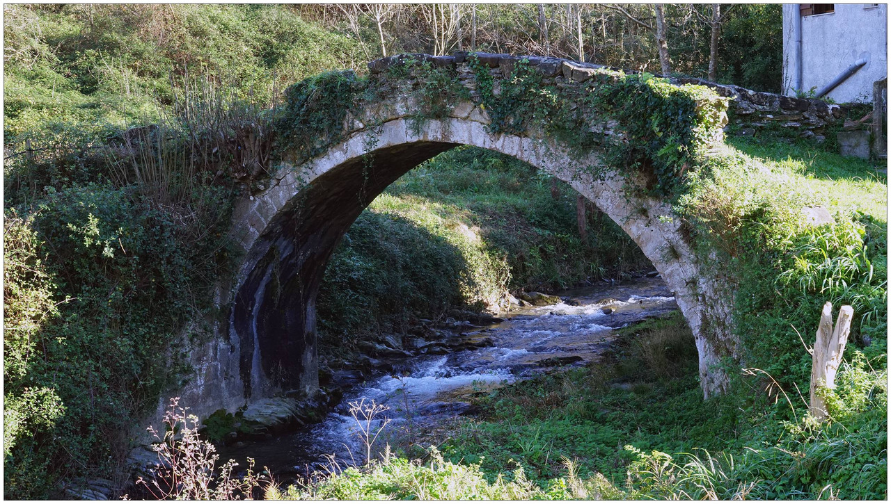 Desde aquí tomamos una pequeña pista señalizada hacia Urdaneta (Aia) y Altzolarats. Caminamos un corto tramo por la pista y, nada más pasar el caserío Jauregietxea, que aparece a nuestra derecha, encontramos un desvío que se dirige hacia la erreka. En este punto se sitúa el caserío Bengoetxea, un rincón con encanto del recorrido. Junto a él se conserva un puente de piedra del siglo XVI que salva la erreka Altzolarats, testigo del antiguo tránsito por el valle. En la parte baja del caserío se aprecia un arco de piedra, vestigio del molino hidráulico que aquí funcionó para dar servicio a los caseríos cercanos.