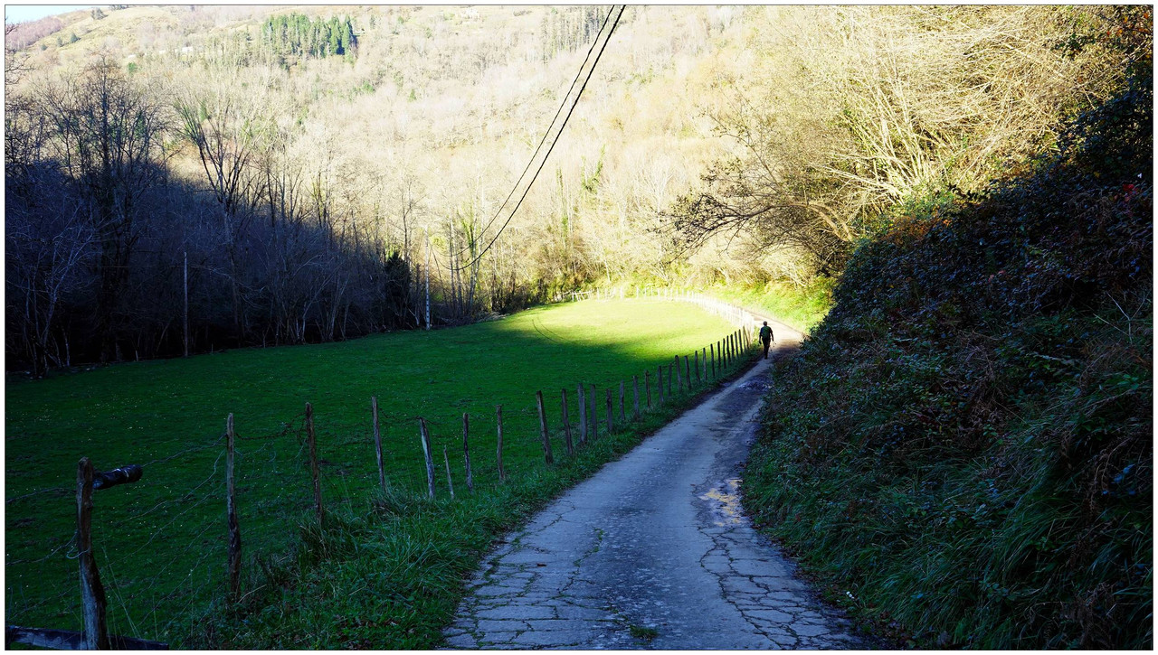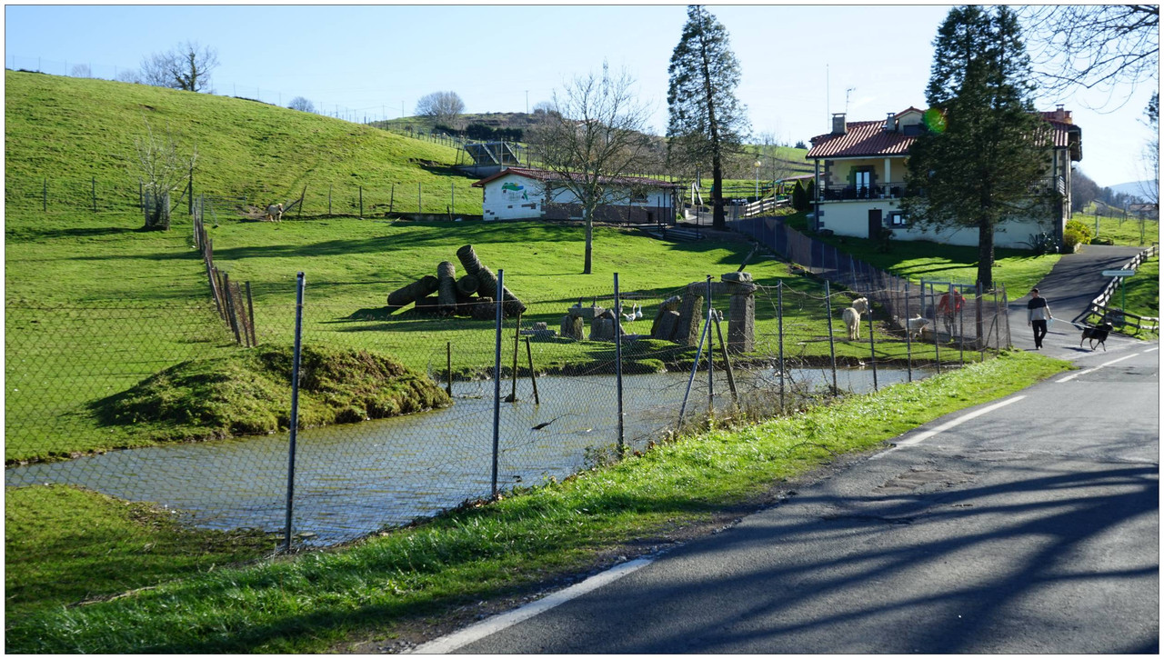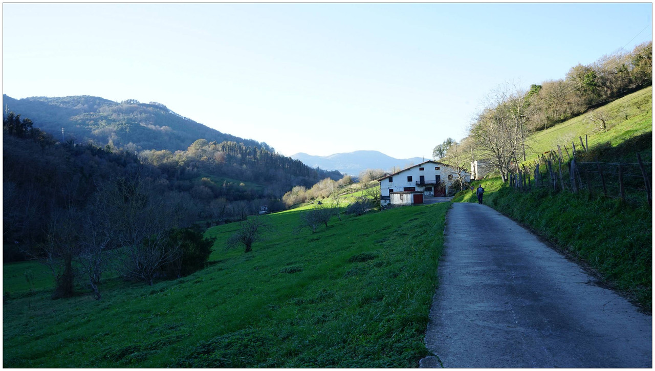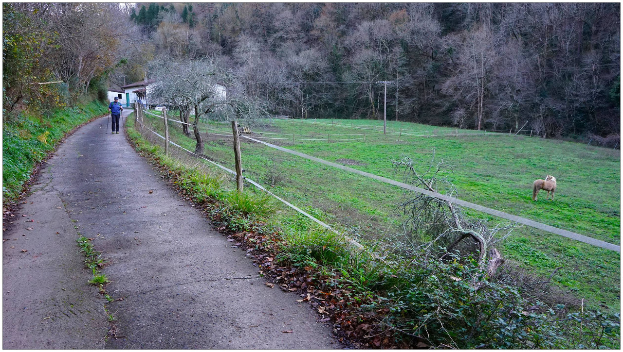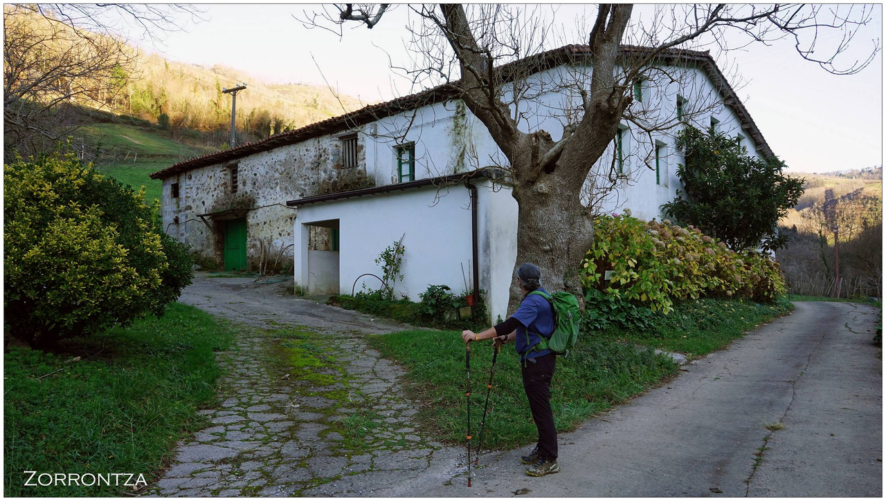 El valle se ensancha ligeramente al llegar a Aristizabal, con campas donde pastan caballos, y más adelante pasamos junto a Zornotza, donde el sol logra colarse en este valle generalmente sombrío y fresco. El último caserío es Urbieta, tras el cual regresamos al cruce inicial.